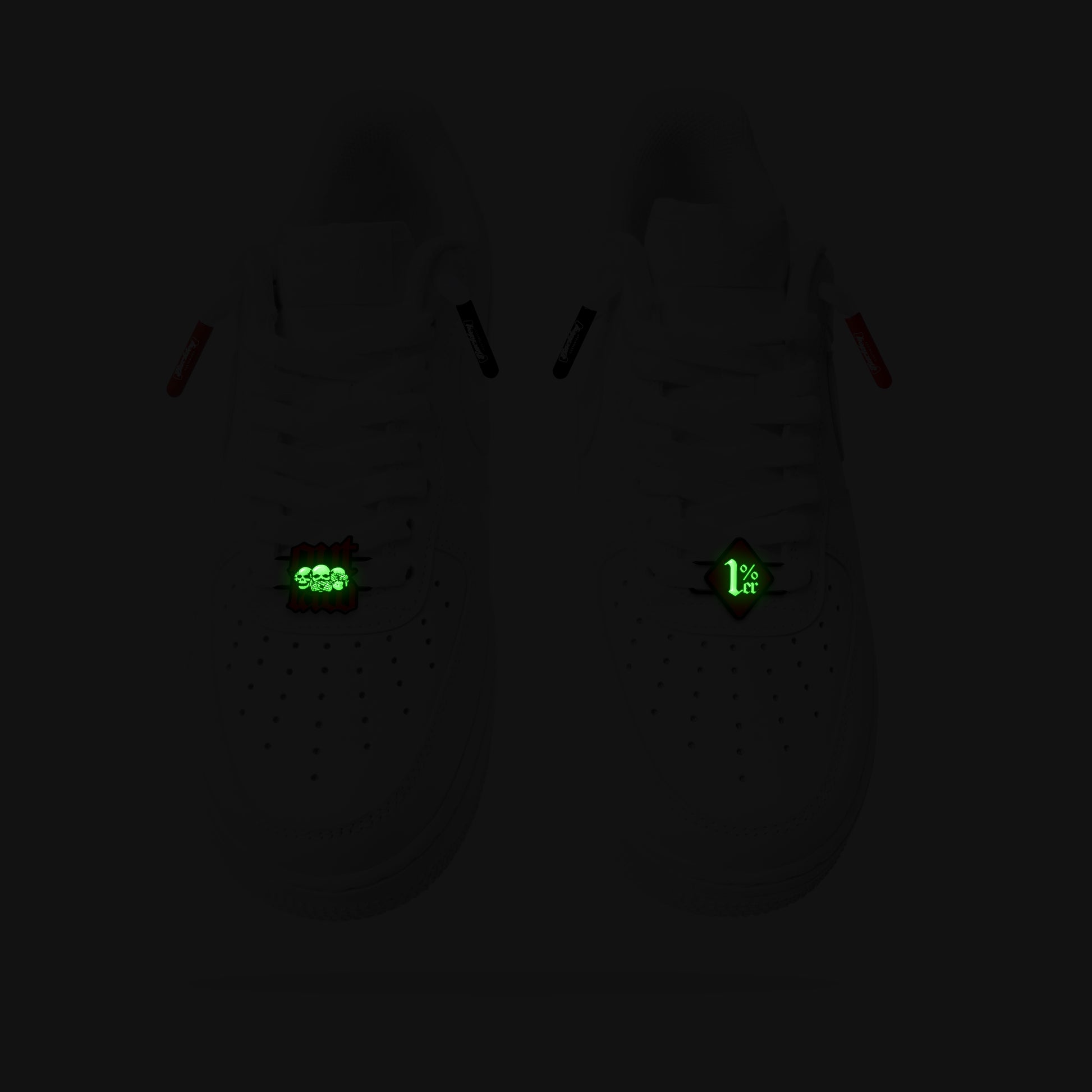 Du folgst keinen Regeln, du schreibst deine eigenen. Für echte 1%er, die wissen, wie man das Gesetz bricht, haben wir ein Sneaker-Accessoire erschaffen, das nicht nur leuchtet – es rebelliert. In der Dunkelheit zeigt es seinen wahren Charakter, genau wie du. Nur für die furchtlosen Gesetzesbrecher entworfen, die sich nicht verstecken wollen. Schnall dir die exklusiven Pieces an die Sneaker und lass die Welt wissen, dass du in keiner Schublade steckst. Hier beginnt deine eigene Geschichte – laut, leuchtend und unaufhaltsam.
